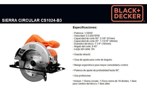 Sierra Circular Back and Decker 7 1/4″ 1500W CS1024-B3.